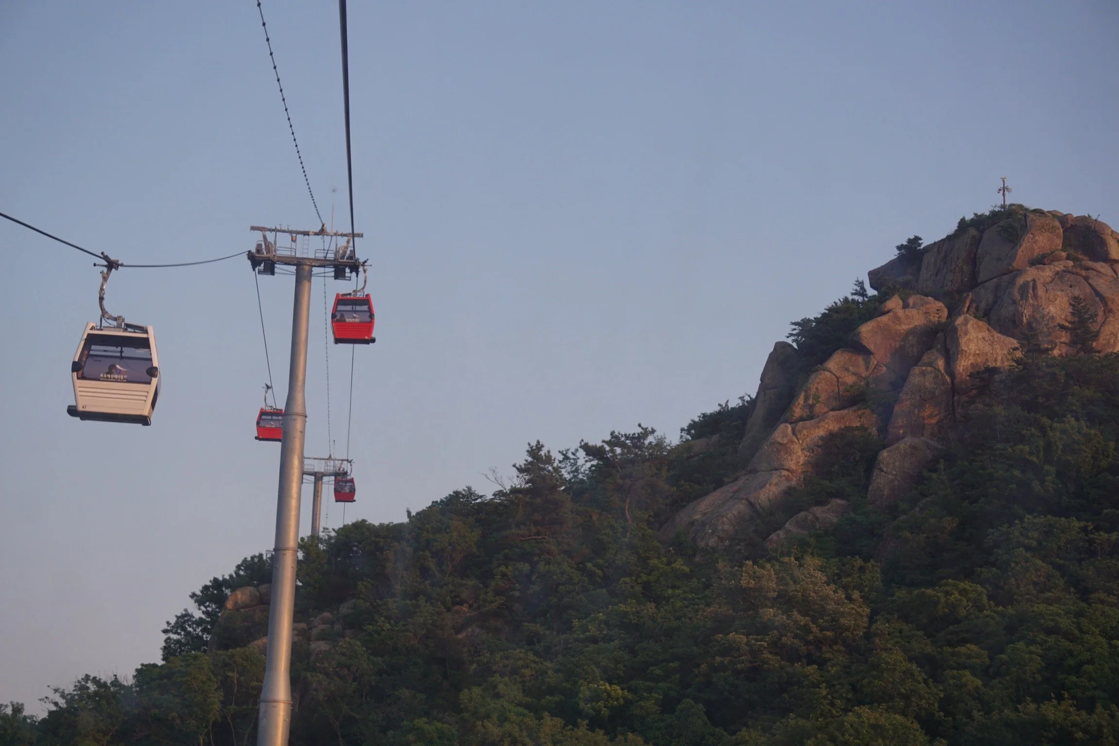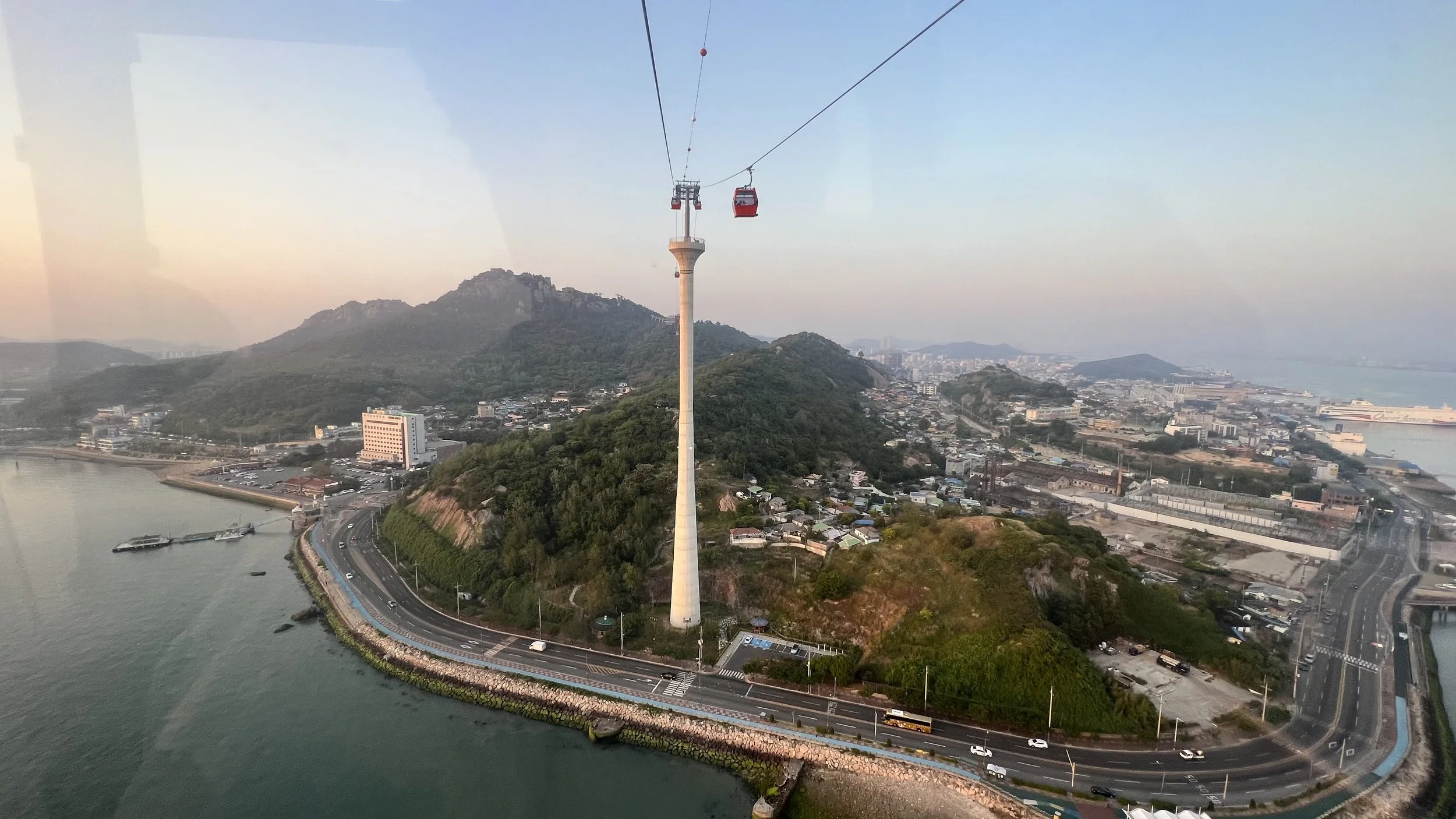 Mokpo’s cable station offered a clear bottom car. I mean how often do you get to ride a cable car with a crystal clear view of the mountain below. Just before we boarded we were warned twice that the final cable cars stopped at 7:30pm. Gleefully, we boarded and off we went.